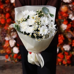Букет "Маленькая радость" из хризантем, гиперикума и ромашек