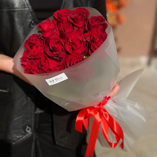 Букет из 15 красных роз Кения (50 см)