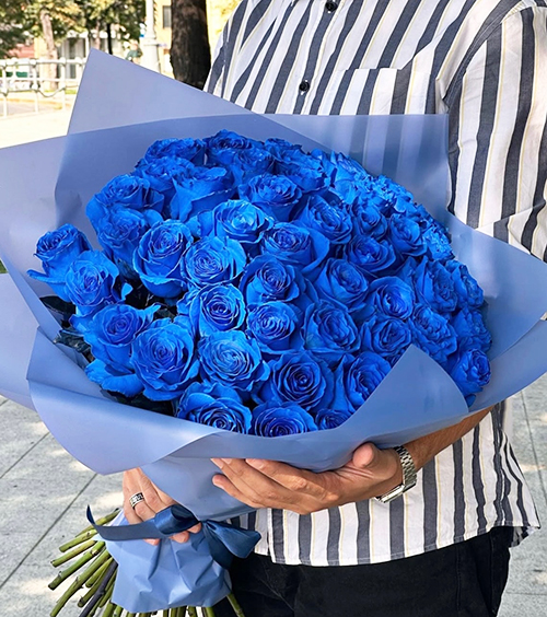 Букет из 51 синей розы Эквадор (60 см)