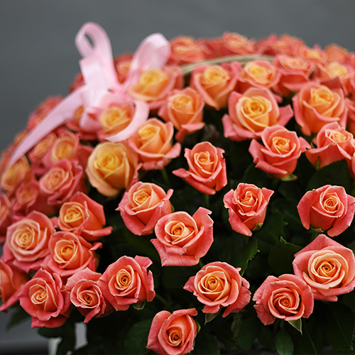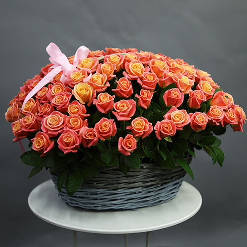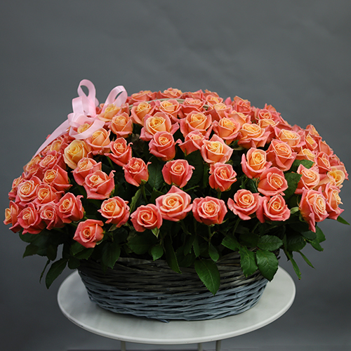 Композиция в корзине из 101 розы Мисс Пигги (50 см)