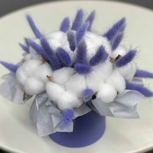 Композиция в шляпной коробке мини из хлопка и лагуруса